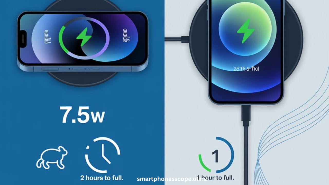 Significantly Slower Charging Speed Expect 5W maximum charging (sometimes even 3W with cheap adapters), compared to the Galaxy A15’s 25W wired fast charging. A full charge takes 3-4 hours wirelessly versus 90 minutes wired.